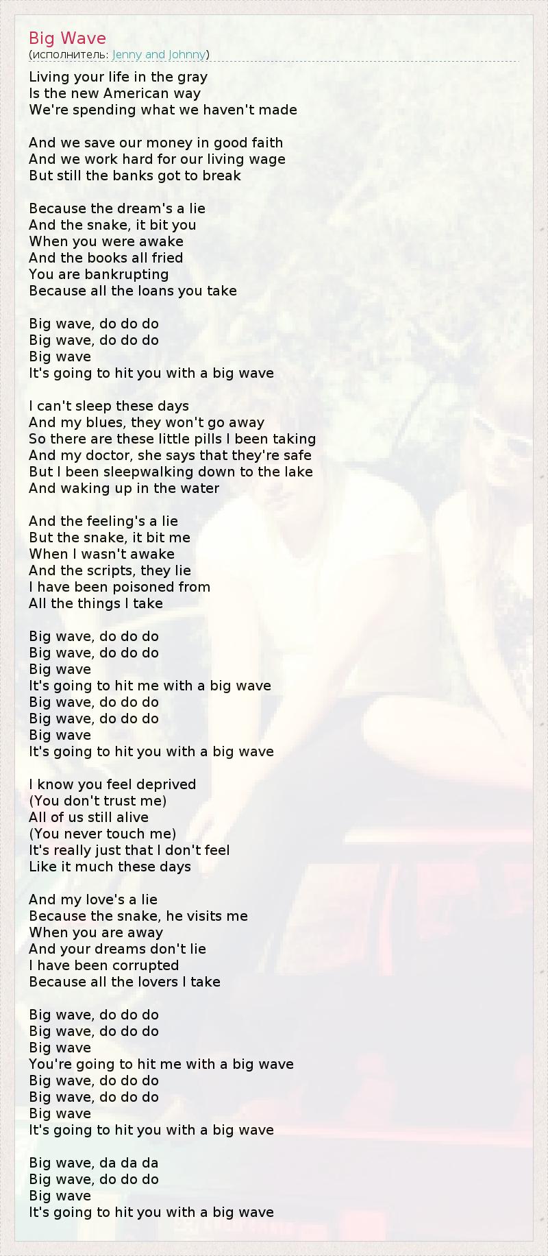 А как ты думаешь, о чем песня "Big Wave" ?