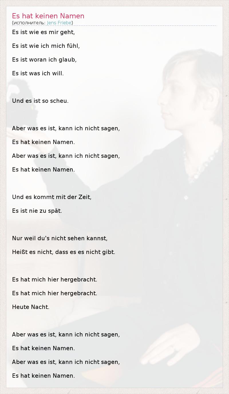 А как ты думаешь, о чем песня "Es hat keinen Namen" ?