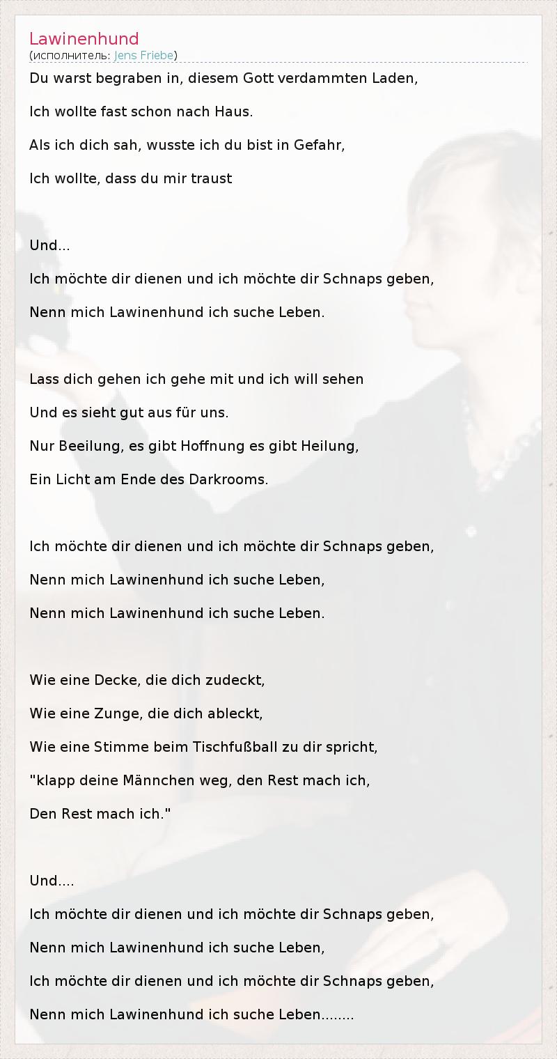 А как ты думаешь, о чем песня "Lawinenhund" ?