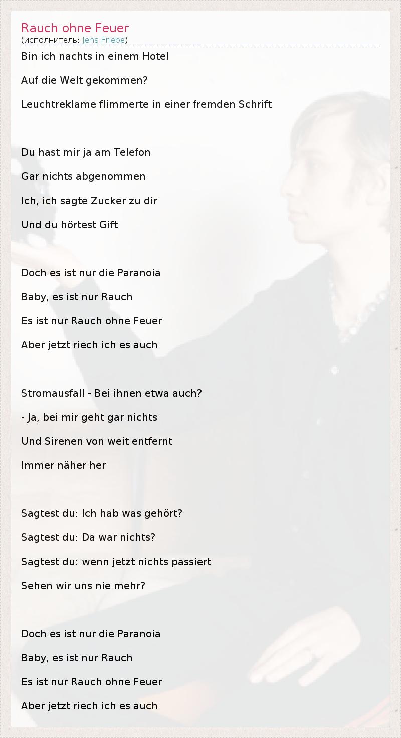 А как ты думаешь, о чем песня "Rauch ohne Feuer" ?