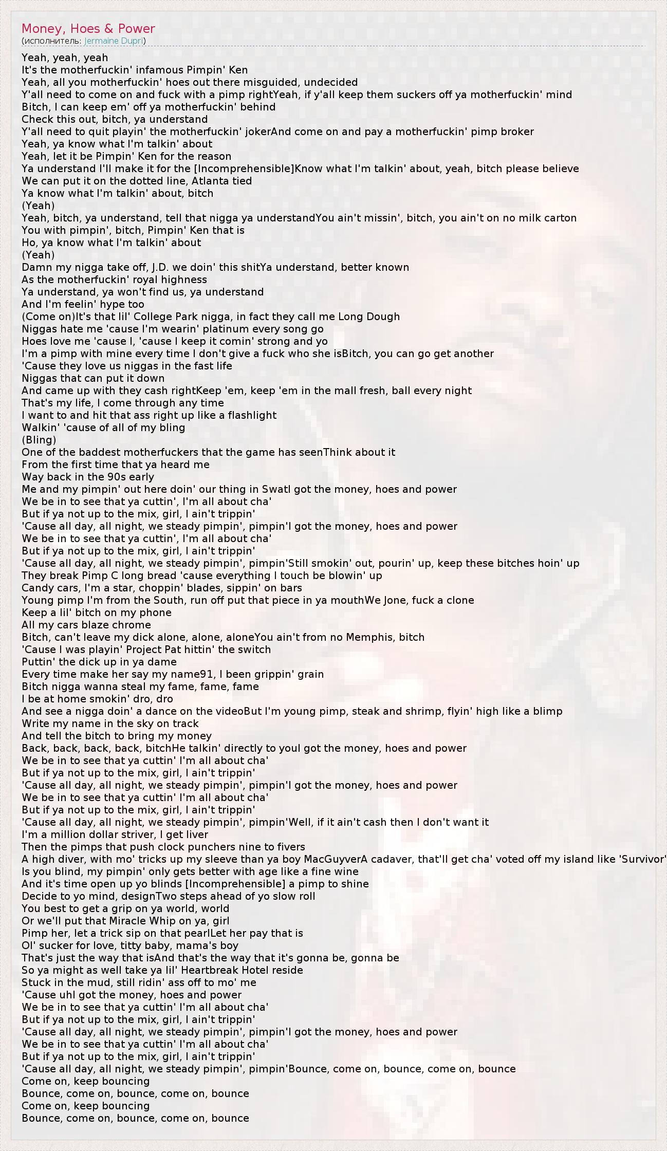 А как ты думаешь, о чем песня "Money, Hoes & Power" ?