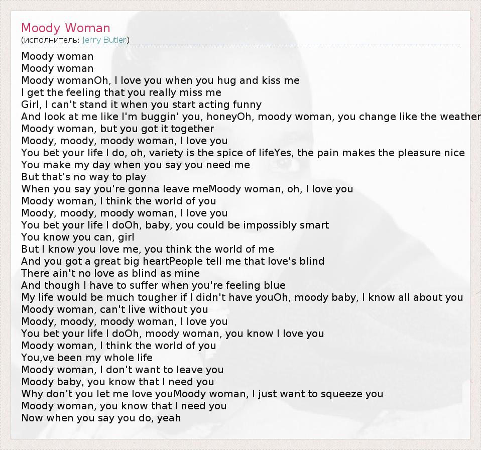 А как ты думаешь, о чем песня "Moody Woman" ?