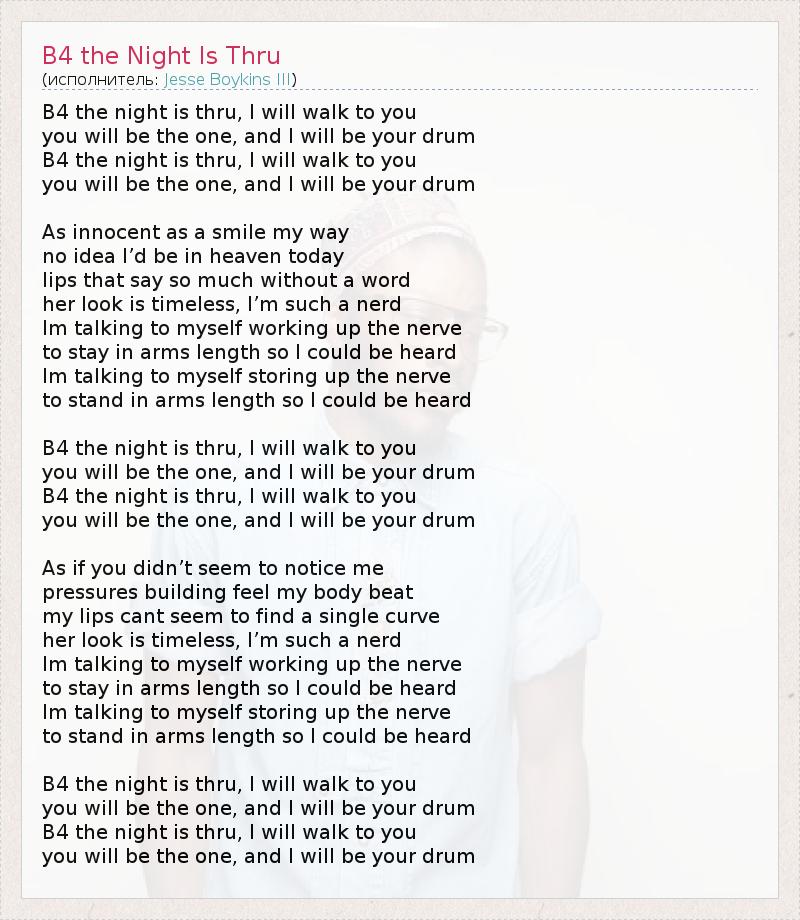 А как ты думаешь, о чем песня "B4 the Night Is Thru" ?