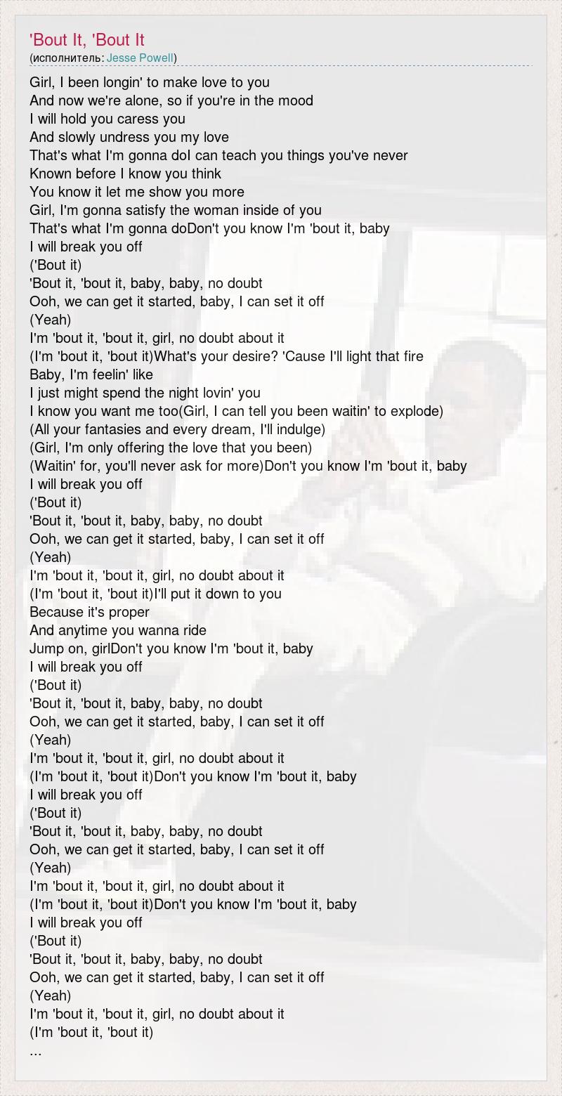 А как ты думаешь, о чем песня "'Bout It, 'Bout It" ?
