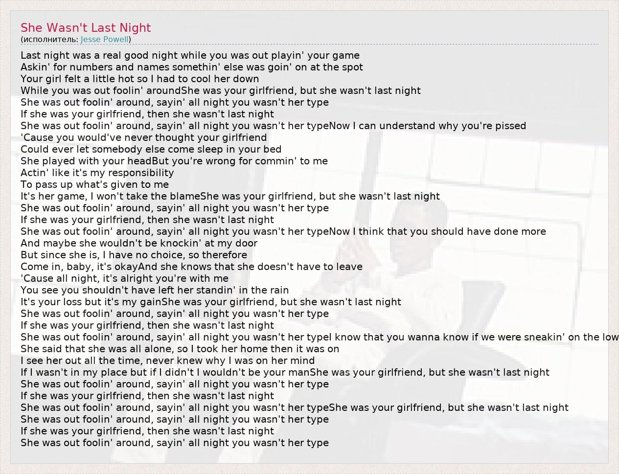 А как ты думаешь, о чем песня "She Wasn't Last Night" ?