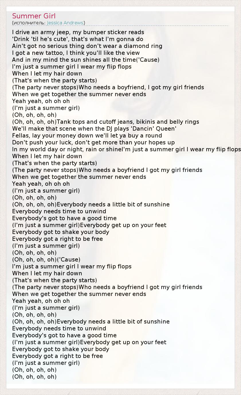А как ты думаешь, о чем песня "Summer Girl" ?