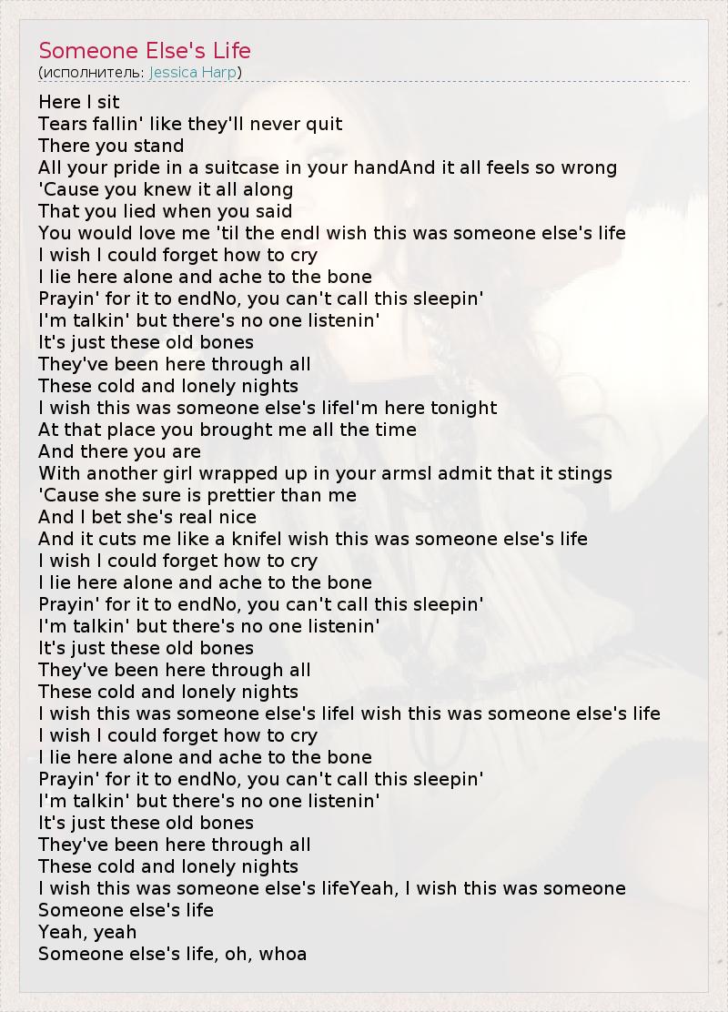 А как ты думаешь, о чем песня "Someone Else's Life" ?