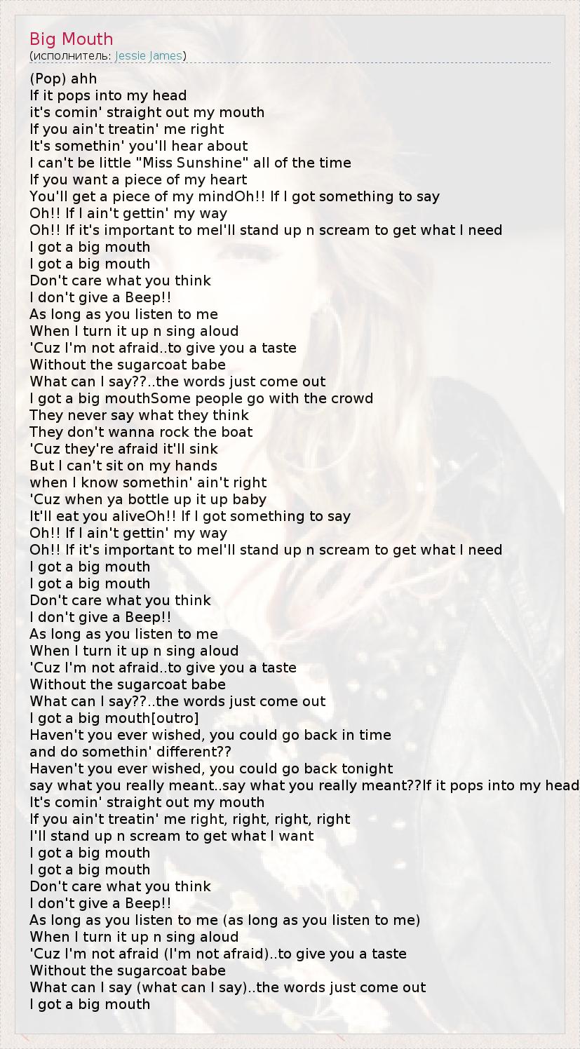А как ты думаешь, о чем песня "Big Mouth" ?