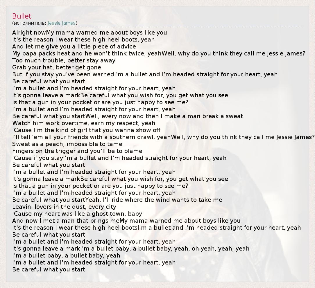 А как ты думаешь, о чем песня "Bullet" ?
