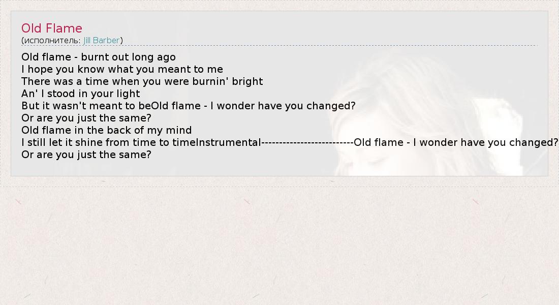 А как ты думаешь, о чем песня "Old Flame" ?
