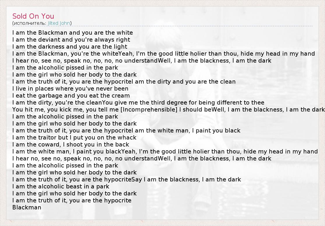 I am the Blackman, you're the whiteYeah, I'm the good little holier than thou, hide my head in my hand