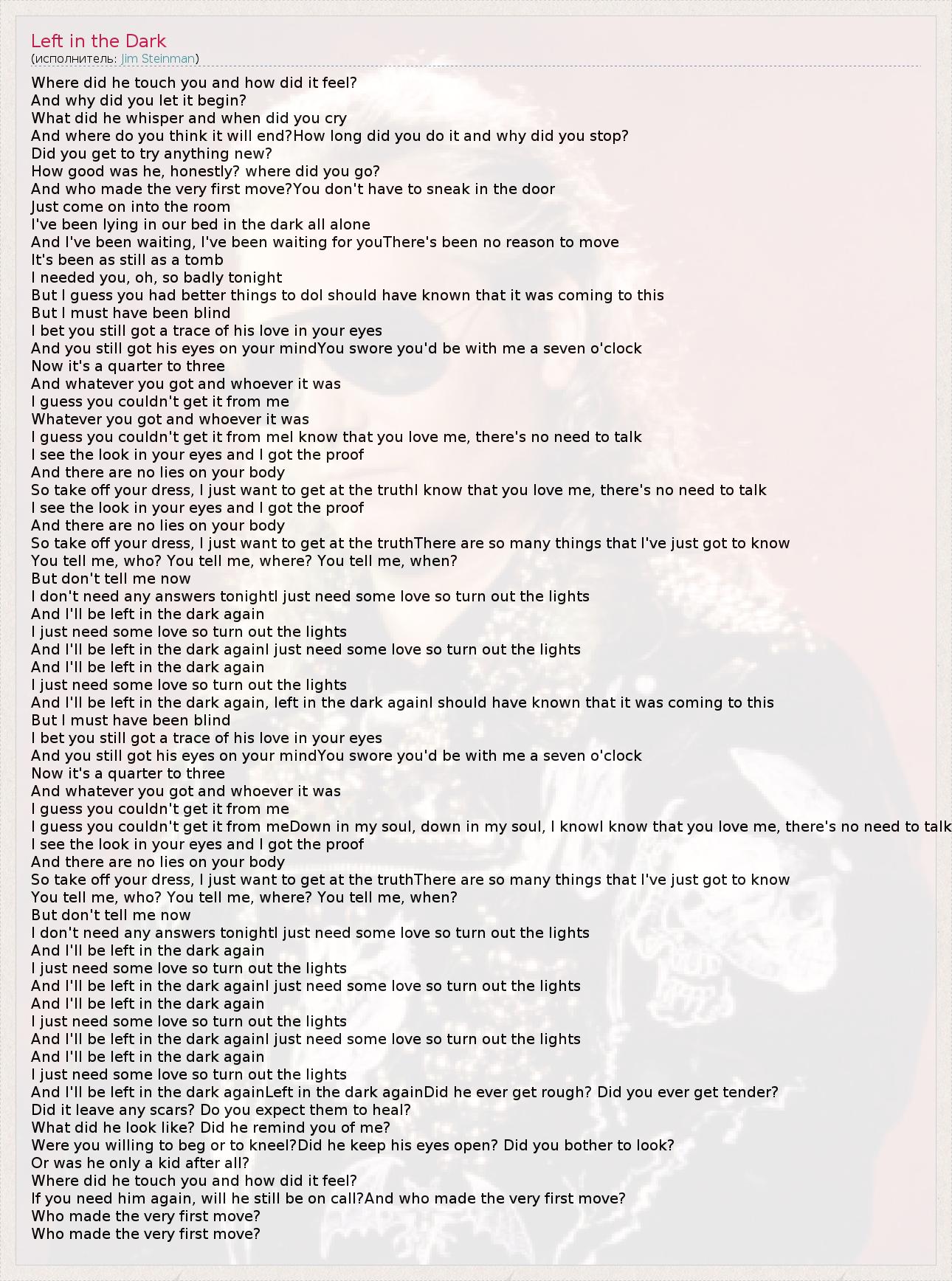 А как ты думаешь, о чем песня "Left in the Dark" ?