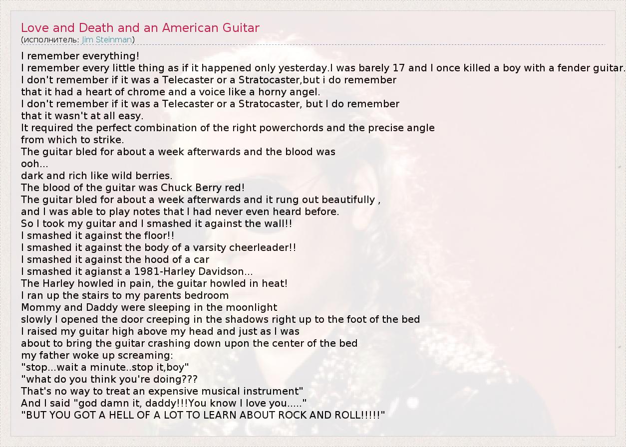 А как ты думаешь, о чем песня "Love and Death and an American Guitar" ?