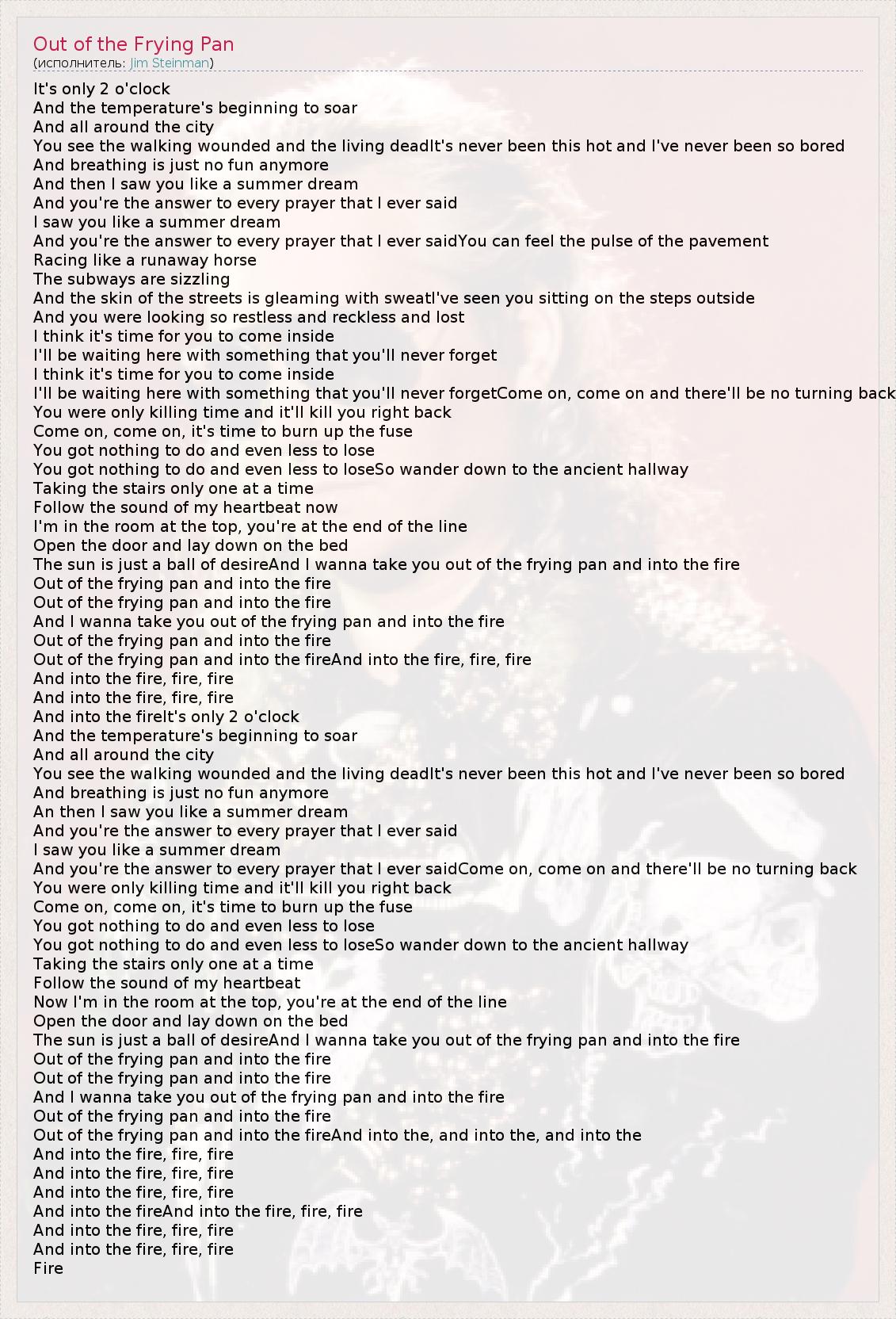 А как ты думаешь, о чем песня "Out of the Frying Pan" ?