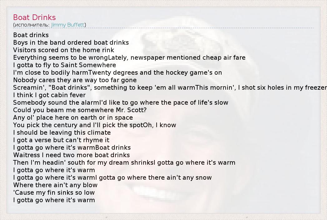 А как ты думаешь, о чем песня "Boat Drinks" ?