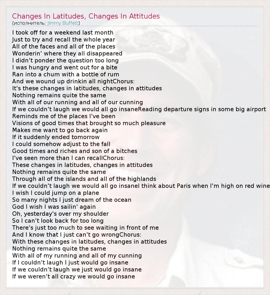 А как ты думаешь, о чем песня "Changes In Latitudes, Changes In Attitudes" ?