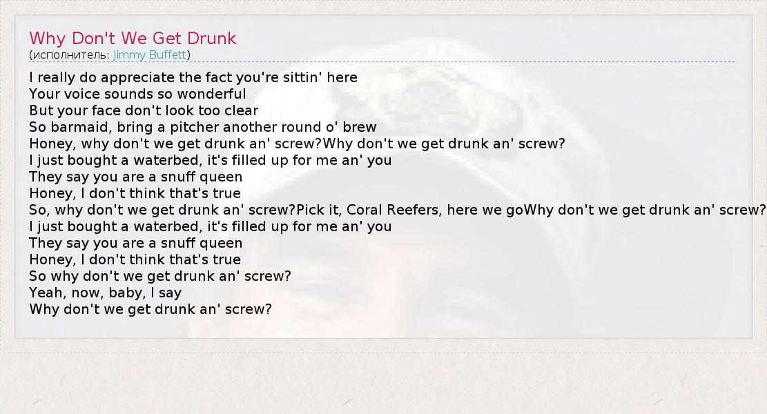 А как ты думаешь, о чем песня "Why Don't We Get Drunk" ?