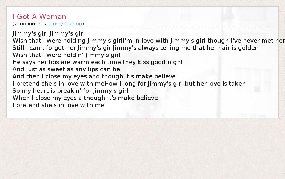 А как ты думаешь, о чем песня "I Got A Woman" ?