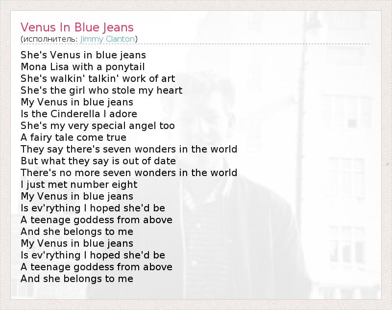 А как ты думаешь, о чем песня "Venus In Blue Jeans" ?