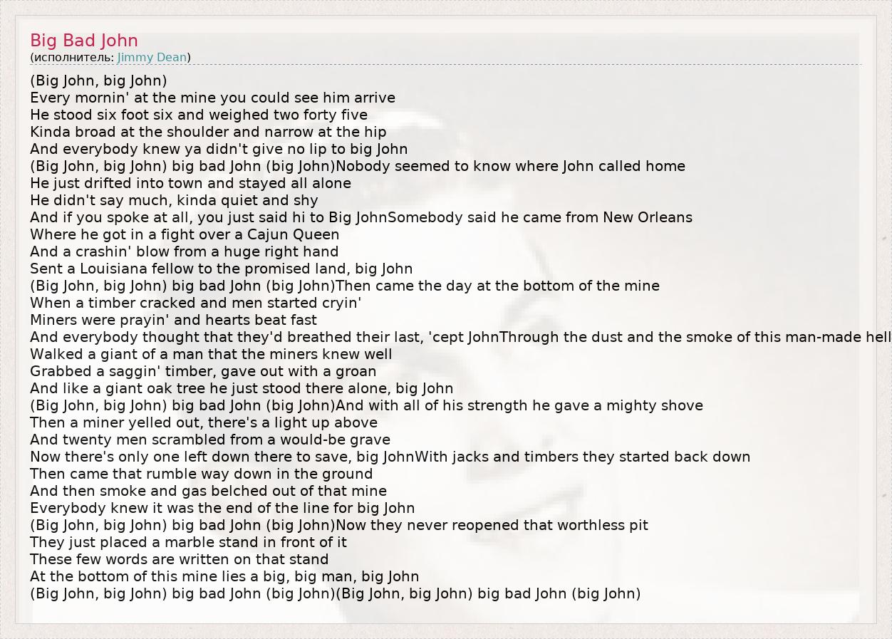 А как ты думаешь, о чем песня "Big Bad John" ?