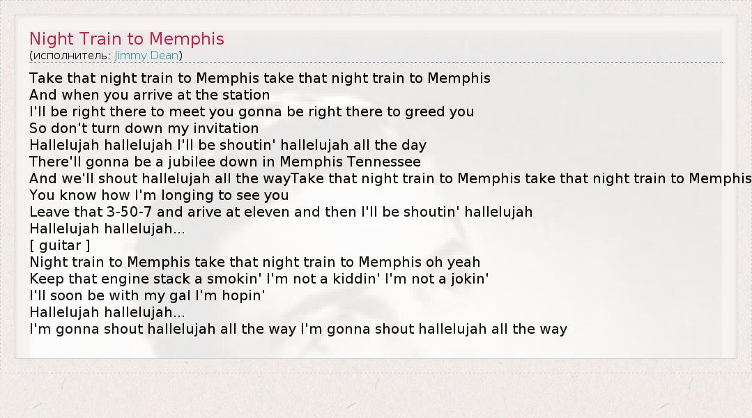 А как ты думаешь, о чем песня "Night Train to Memphis" ?