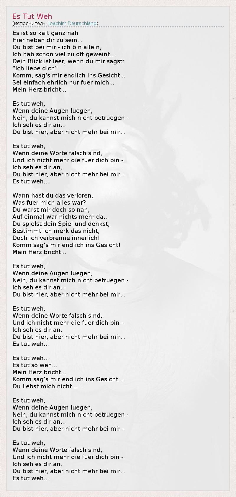 А как ты думаешь, о чем песня "Es Tut Weh" ?