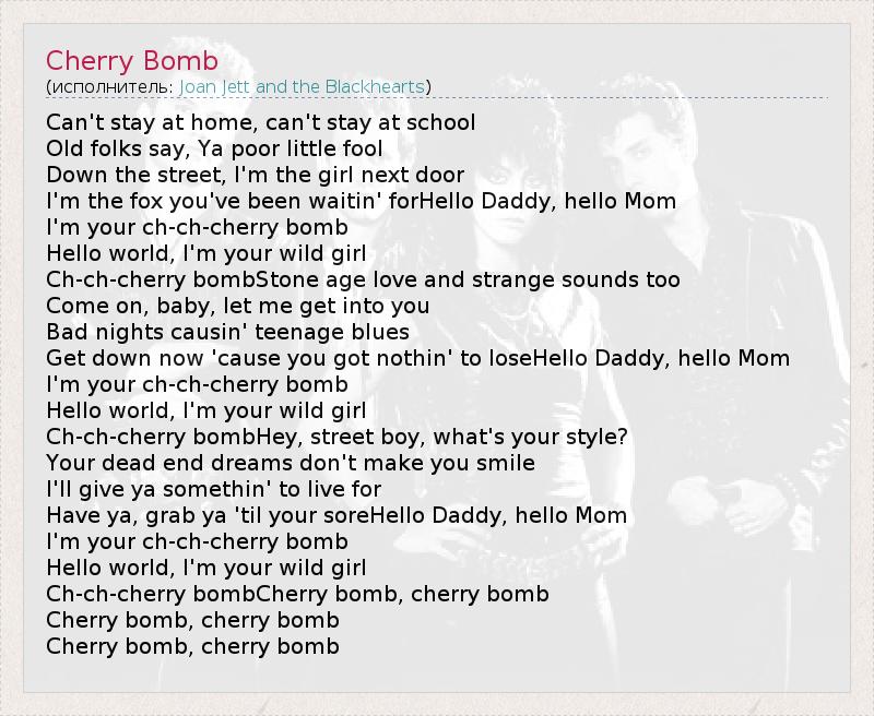 А как ты думаешь, о чем песня "Cherry Bomb" ?