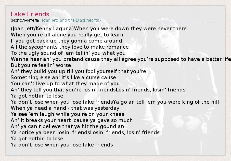 А как ты думаешь, о чем песня "Fake Friends" ?