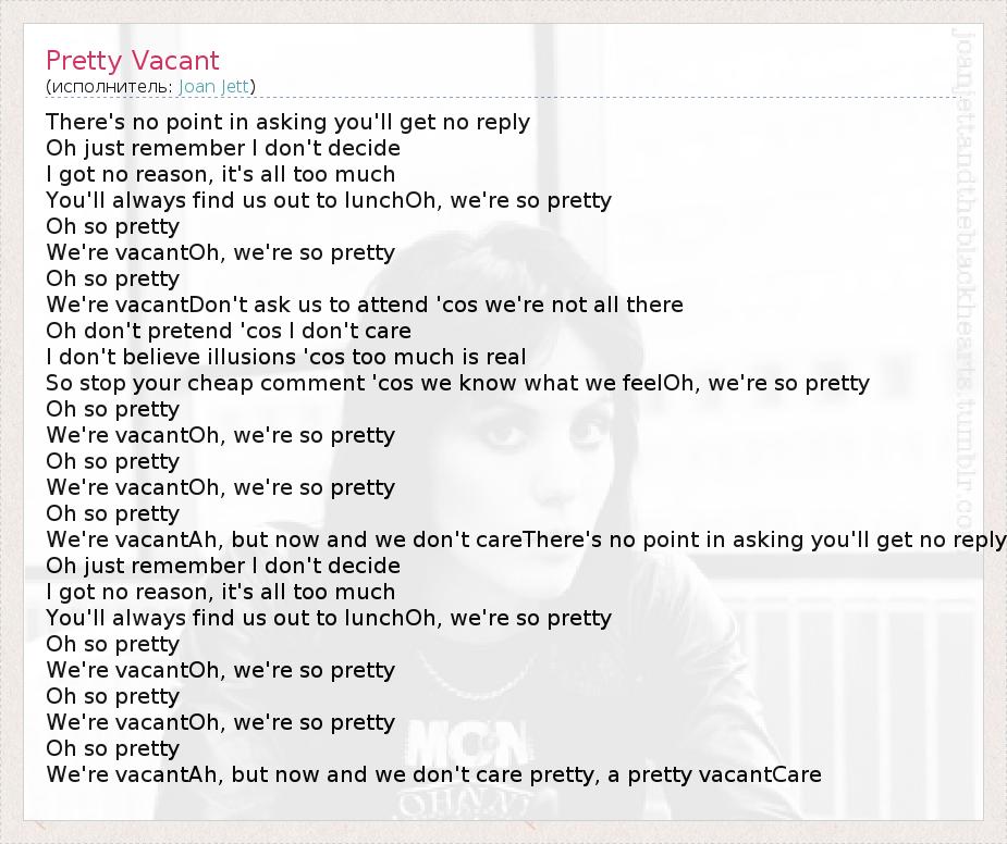 А как ты думаешь, о чем песня "Pretty Vacant" ?