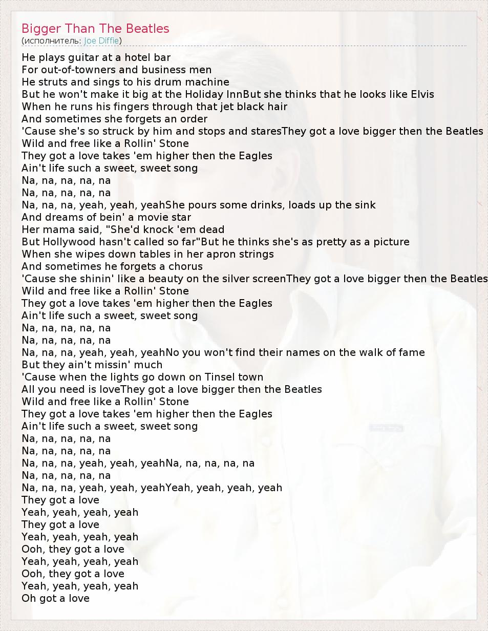 ГлавнаяИсполнителиJoe DiffieBigger Than The Beatles
