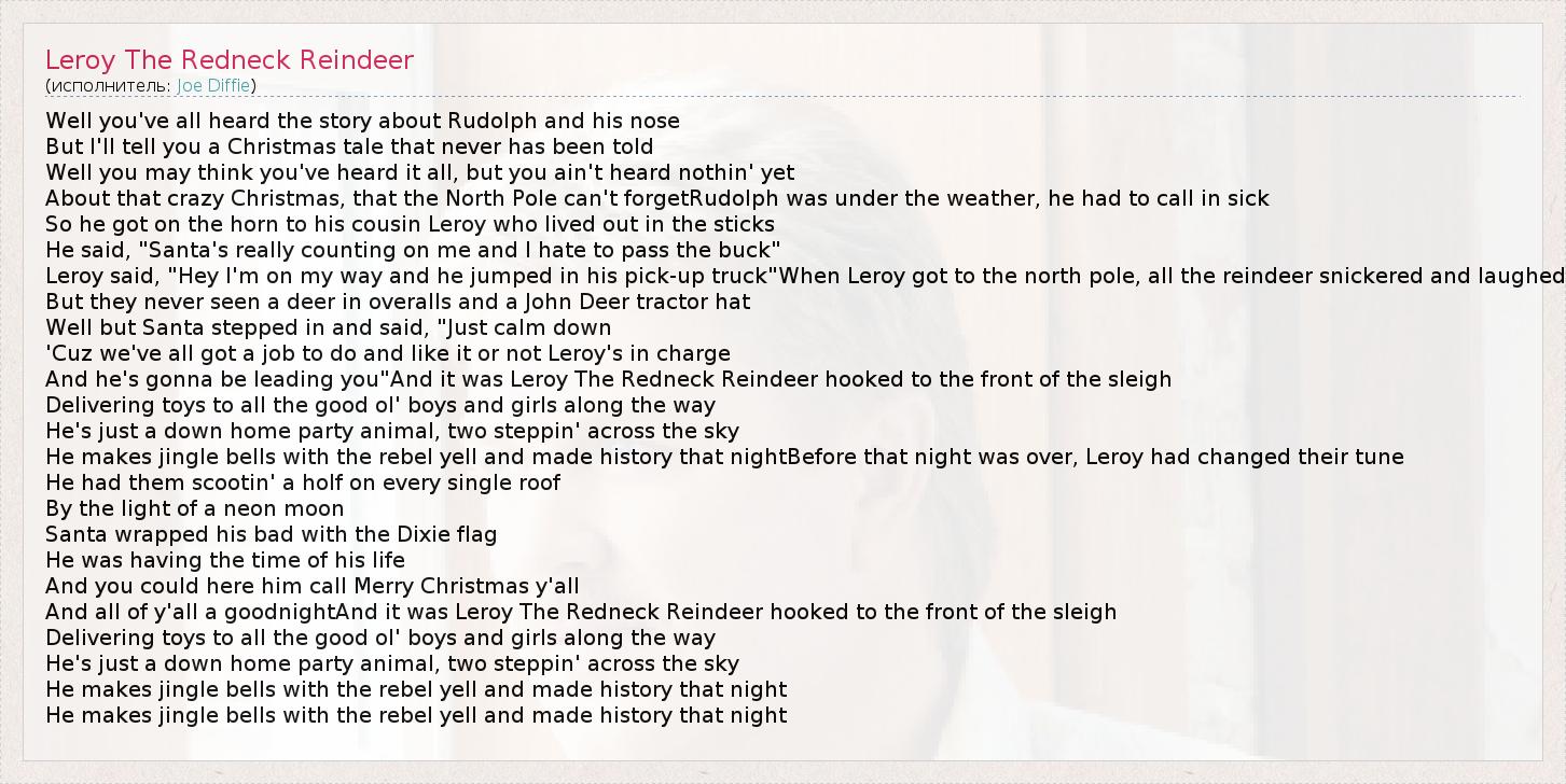 А как ты думаешь, о чем песня "Leroy The Redneck Reindeer" ?