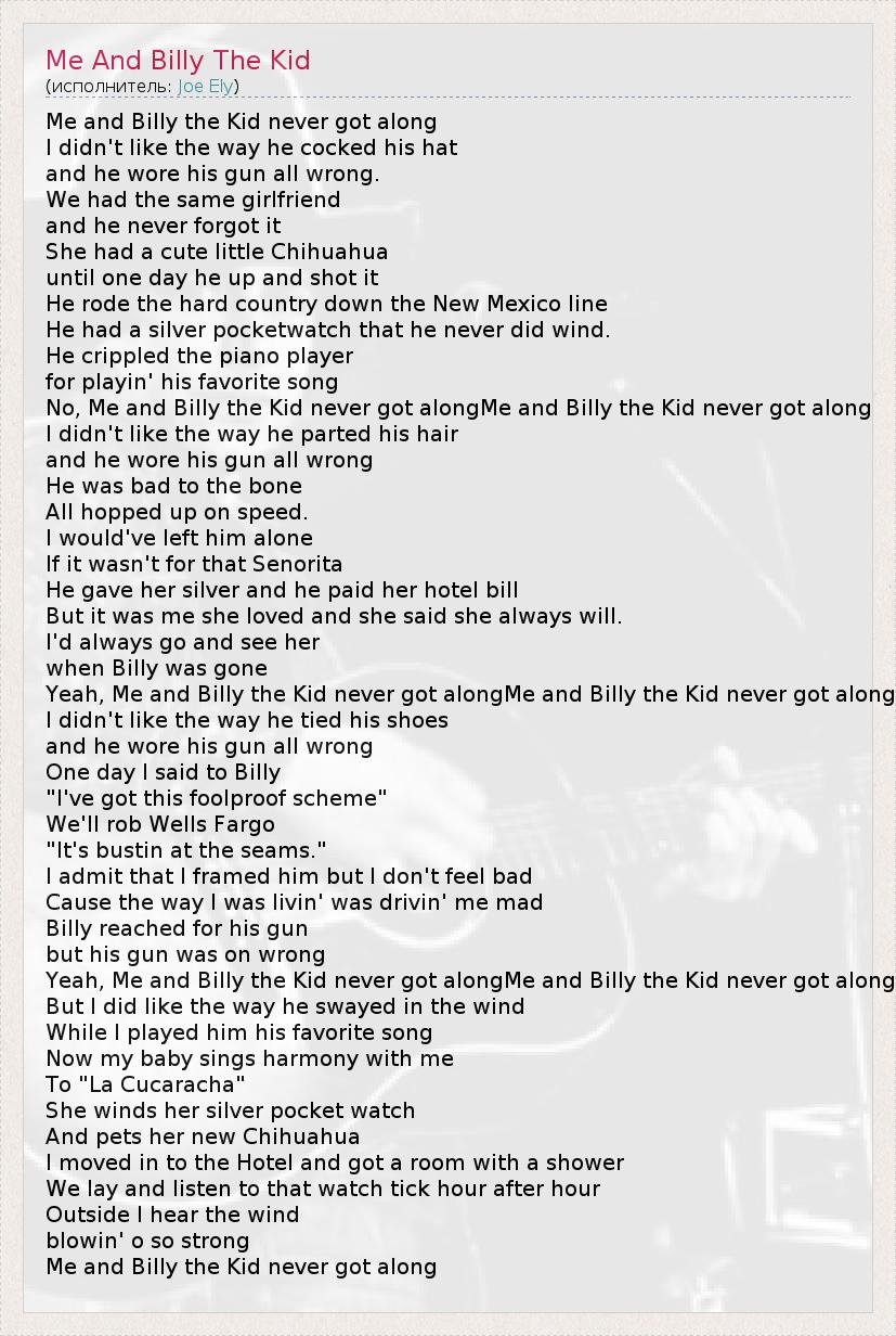 А как ты думаешь, о чем песня "Me And Billy The Kid" ?
