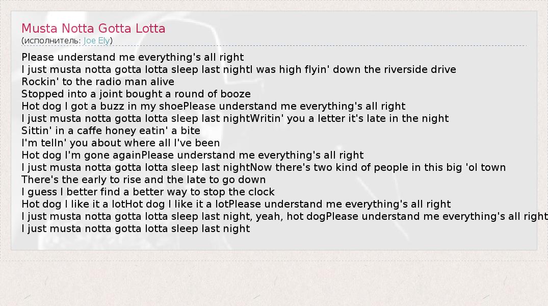 ГлавнаяИсполнителиJoe ElyMusta Notta Gotta Lotta