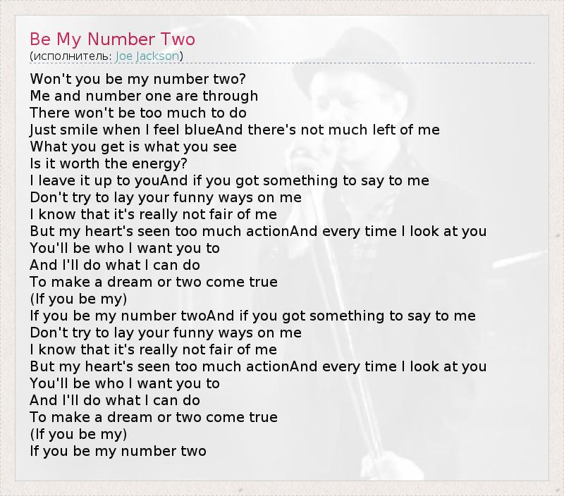 А как ты думаешь, о чем песня "Be My Number Two" ?