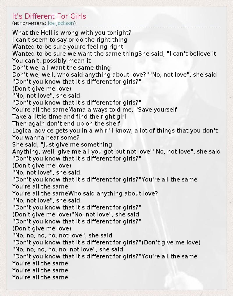 А как ты думаешь, о чем песня "It's Different For Girls" ?
