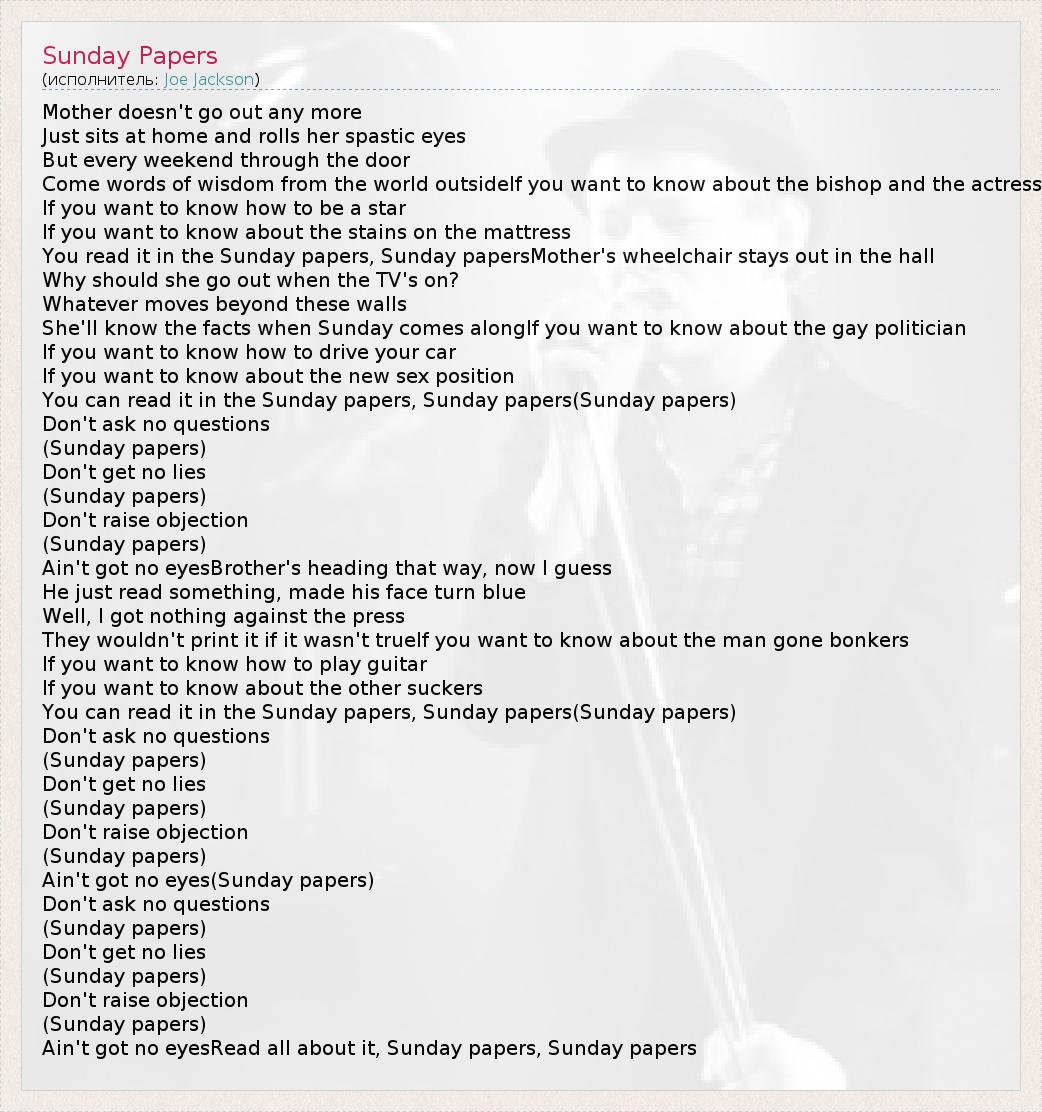 You can read it in the Sunday papers, Sunday papers(Sunday papers)