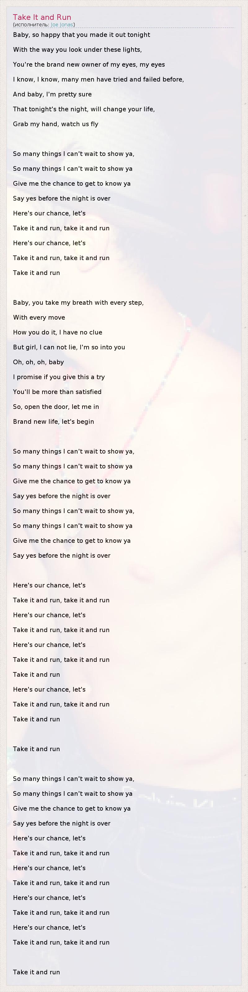А как ты думаешь, о чем песня "Take It and Run" ?