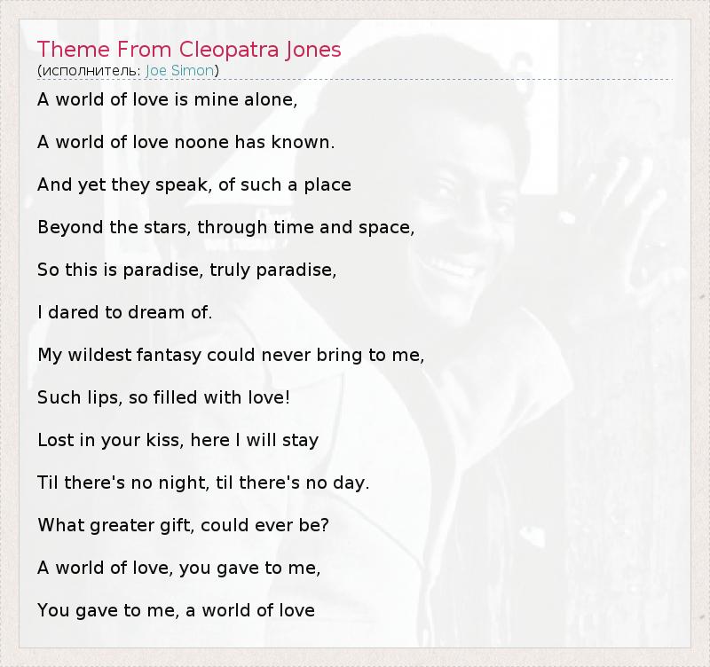 А как ты думаешь, о чем песня "Theme From Cleopatra Jones" ?