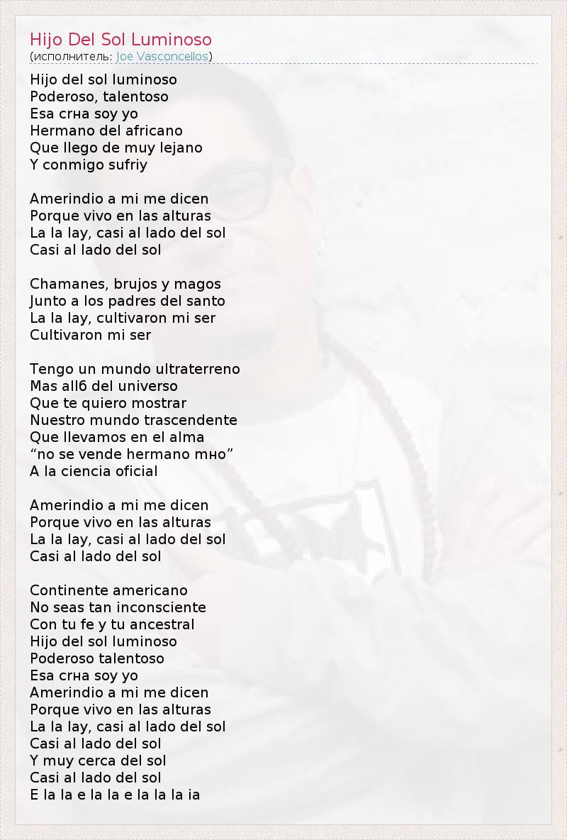 А как ты думаешь, о чем песня "Hijo Del Sol Luminoso" ?