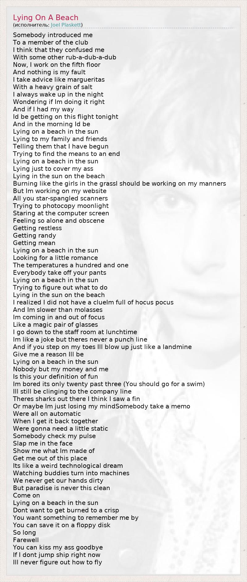 А как ты думаешь, о чем песня "Lying On A Beach" ?