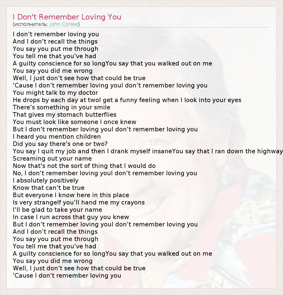 ГлавнаяИсполнителиJohn ConleeI Don't Remember Loving You
