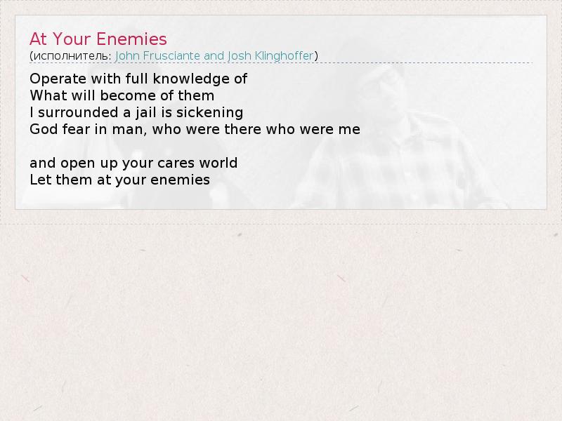 А как ты думаешь, о чем песня "At Your Enemies" ?