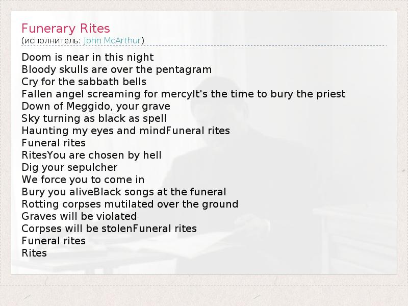 А как ты думаешь, о чем песня "Funerary Rites" ?