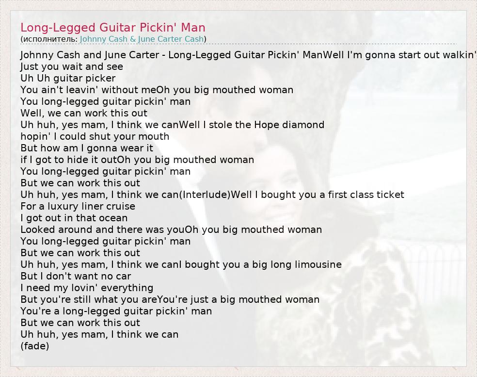 А как ты думаешь, о чем песня "Long-Legged Guitar Pickin' Man" ?