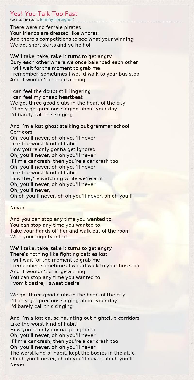 А как ты думаешь, о чем песня "Yes! You Talk Too Fast" ?