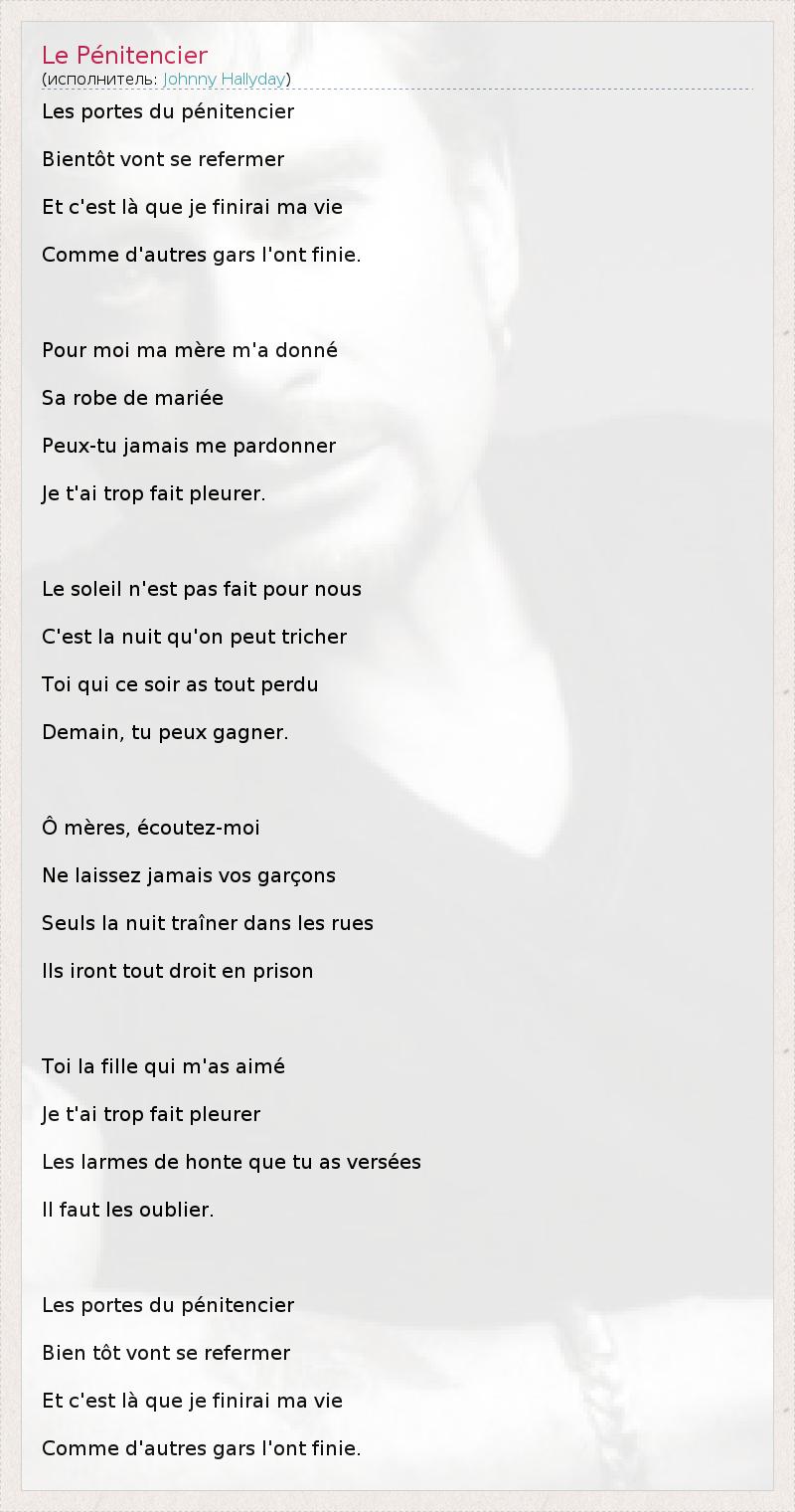 А как ты думаешь, о чем песня "Le Pénitencier" ?