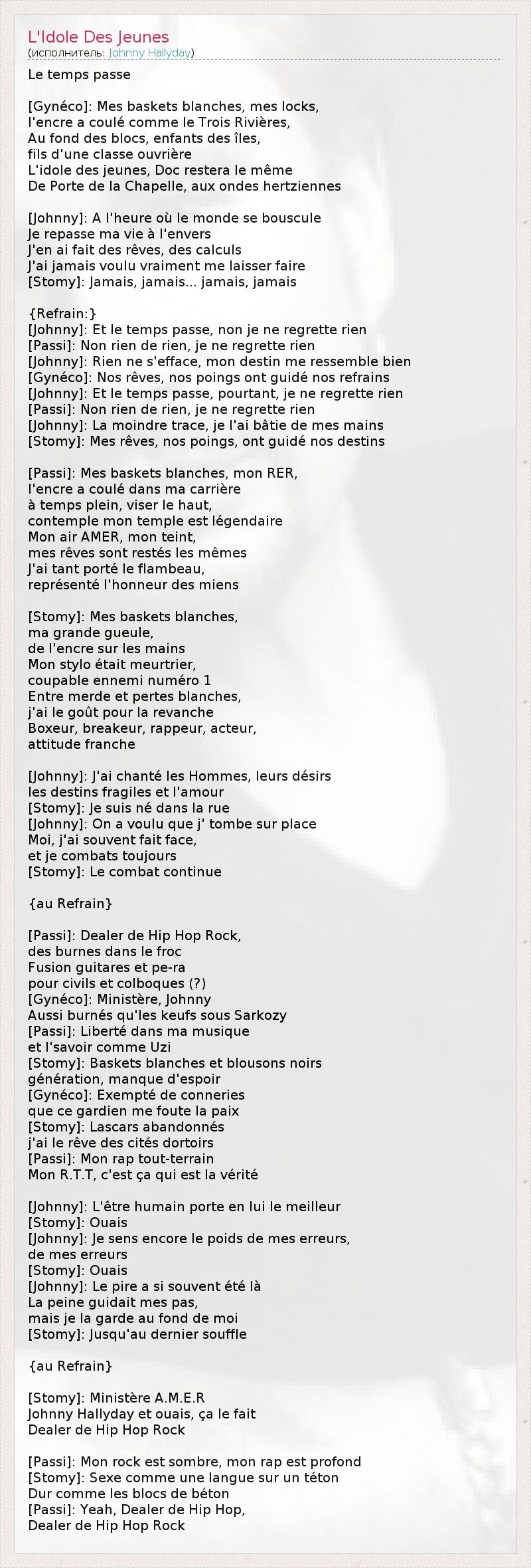 [Джонни]: Et Le Temps PASSE, pourtant, JE пе regrette Rien
