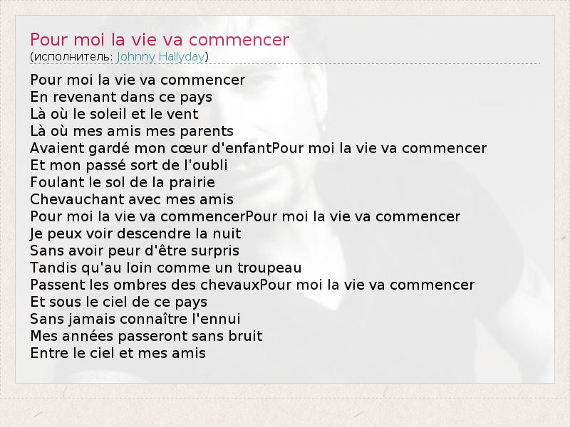 А как ты думаешь, о чем песня "Pour moi la vie va commencer" ?