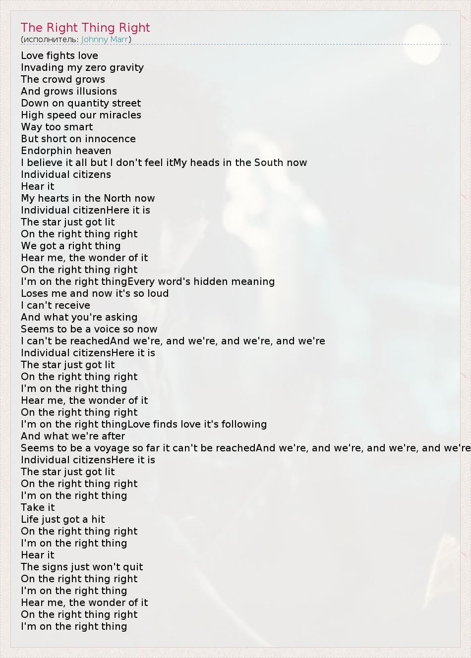 А как ты думаешь, о чем песня "The Right Thing Right" ?