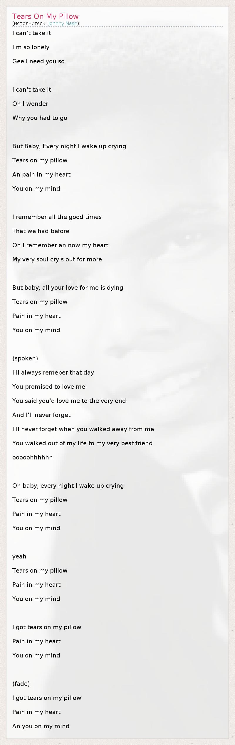 А как ты думаешь, о чем песня "Tears On My Pillow" ?